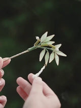 Inspired by the gentle resilience of nature, the Bamboo Branch Pearl Hairstick evokes the still elegance of Eastern gardens. Its design features a 12cm long hair pin, adorned with a 7cm velvet-textured bamboo leaf and a 5.5cm drop tassel. Each detail sways softly with your movement—like leaves rustling in a quiet breeze.