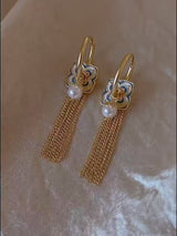 Measuring 6.5cm in total length, each earring is thoughtfully crafted from copper, alloy, and a lustrous pearl accent—blending heritage and modern elegance with every movement.