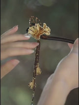 Adorn your hair with the Golden Floral Hair Stick, where tradition meets artistry in a lovingly detailed design. Each element is thoughtfully chosen, creating a wearable sculpture that celebrates both Eastern heritage and personal elegance.