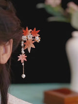 Synthetic pearls and beads add subtle radiance, cascading gracefully with every movement. The arrangement feels like an autumn breeze woven into your hair—each leaf, each pearl, a blessing of abundance and renewal. In many Asian cultures, the maple leaf is cherished as a symbol of resilience, peaceful change, and heartfelt memories, while pearls represent purity and lasting fortune.