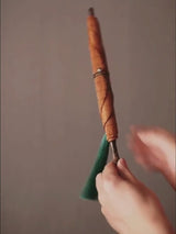 The 50cm long, sturdy handle and the 23cm round fan face, accented with a vivid green tassel, create a unique presence from the moment you hold it in your hand.