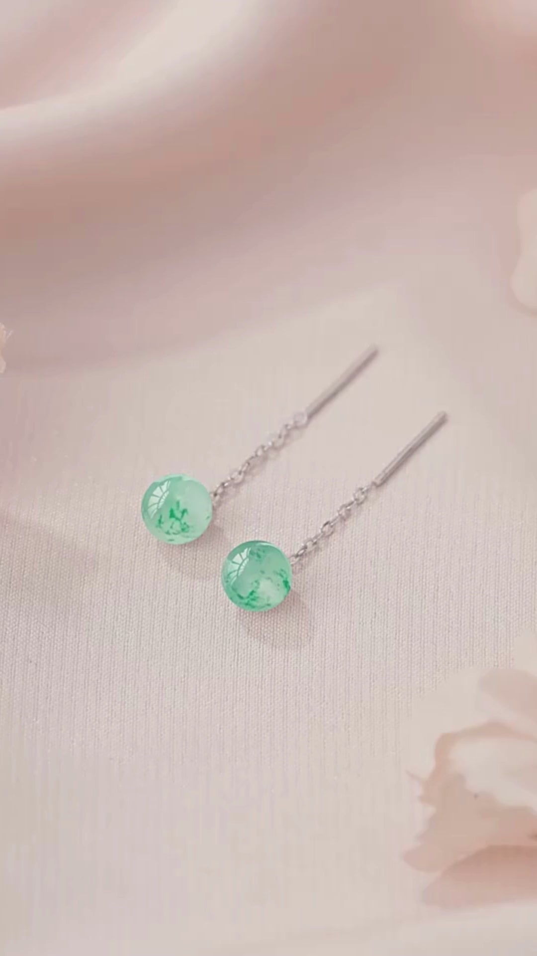 Experience the luminous tranquility of African Jade, shimmering like ice with an exquisite glass-like clarity. These refined stud earrings feature a luxurious round gem, celebrated for its ethereal sheen and Eastern symbolism of purity, wisdom, and emotional renewal. In Asian tradition, jade represents harmony, resilience, and a quiet inner strength—an energy perfectly reflected in every glimmer of this unique stone.